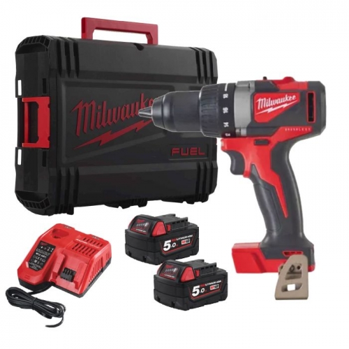 Berbequim aparafusador sem escovas M18, 2 velocidades, torque máximo 82Nm, bucha aperto rápido 13mm. Fornecido com 2 baterias M18B5 e carregador rápido M12-18FC, em HD-box