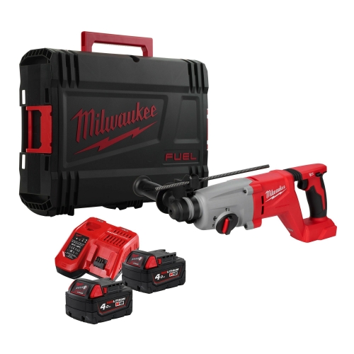 Martelo combinado SDS-Plus sem escovas M18, punho em D, 4 modos, 2,6J de energia de impacto, capacidade máxima 26mm, 0-1.270rpm, 0-4.600ipm. Fornecido com 2 baterias M18B4 e carregador M12-18C, em HD-box