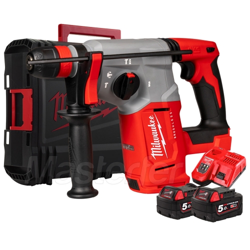 Martelo combinado SDS-Plus sem escovas M18, 4 modos, 2,3J de energia de impacto, capacidade máxima 26mm, 0-1.400rpm, 0-4.900ipm, FIXTEC. Fornecido com 2 baterias M18B5 e carregador rápido M12-18FC, em HD-box