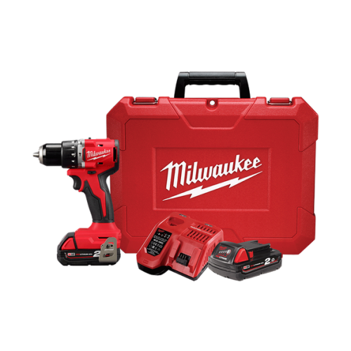 Berbequim com percussão compacto sem escovas M18?, 2 velocidades, torque máximo 60,5Nm, bucha metálica 13mm, comprimento total 145mm. Fornecido com 2 baterias M18B2 e carregador M12-18C, em kitbox