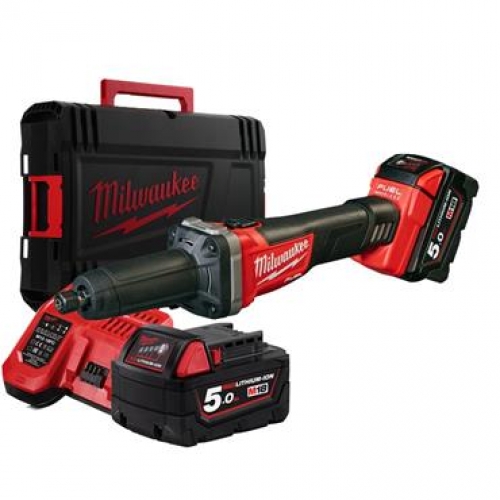 Retificadora de interiores M18 FUEL ONE-KEY, travão RAPIDSTOP, velocidade variável de 5 posições, 8.000-20.000rpm, diâmetro de pinça 6/8mm, capacidade máxima de diâmetro de disco 50mm, AVS, mudança de acessório com apenas uma chave, interruptor de botão com bloqueio. Fornecido com 2 baterias M18B5 e carregador rápido M12-18FC, em HD-box