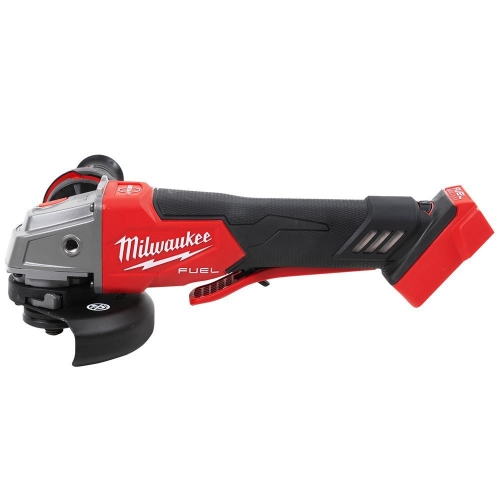 Rebarbadora de acabamentos M18 FUEL, diâmetro de disco 125mm, travão RAPIDSTOP, cabeça plana para trabalhar em ângulos até 43°, 8.500rpm, AVS, FIXTEC, proteção anti-golpe, DMS. Fornecido em versão zero, sem baterias nem carregador, em HD-box