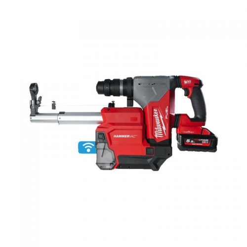 Martelo combinado SDS-Plus M18 FUEL ONE-KEY, extrator de poeiras M18 FDDEXL, 4 modos, 2,5J de energia de impacto, capacidade máxima 26mm, 0-1.330rpm, 0-4.800ipm, FIXTEC, AUTOSTOP. Fornecido com 2 baterias HIGH OUTPUT M18HB5.5 e carregador rápido M12-18FC, em kitbox