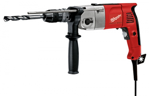 Berbequim com percussão 850W, 2 velocidades, AVS, Softgrip, bucha aperto rápido 1,5-13mm, torque máximo 56Nm. Fornecido em kitbox