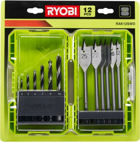 CAIXA EMPILABLE PERFORACIÓN MADERA 12 ACCESÓRIOS (6 BROCAS +