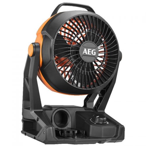 Ventilador 18V, diâmetro tambor 19,5cm, cabeça rotativa 210º, 6 modos de velocidade, 1.100 a 2.400rpm e 900m3/h. Fornecido em versão zero, sem baterias nem carregador, em caixa de cartão