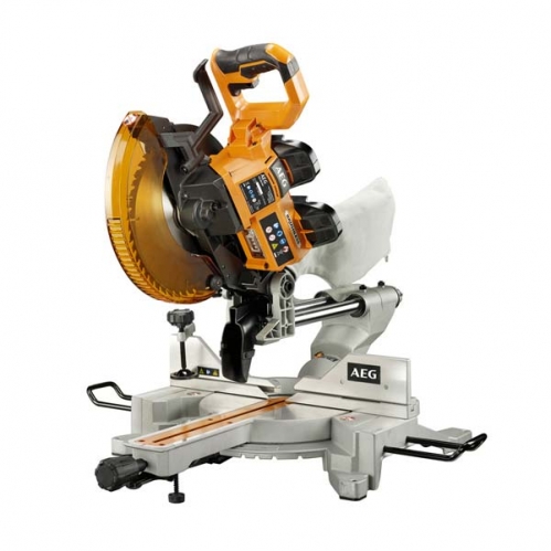 Ingletadora sem escovas 18V 254mm, trabalha com 2 baterias 18V, disco 254x30mm, 90x305mm capacidade 90º/90º, duplo bisel. Fornecido em versão zero, sem baterias nem carregador, em caixa de cartão