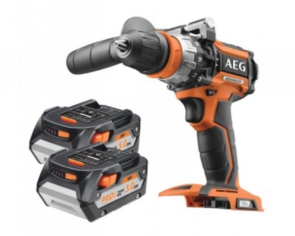 Berbequim com percussão 18V, sem escovas, bucha 13mm destacável, 2 velocidades, fornecido com 2 baterias de 5.0Ah, mala de transporte