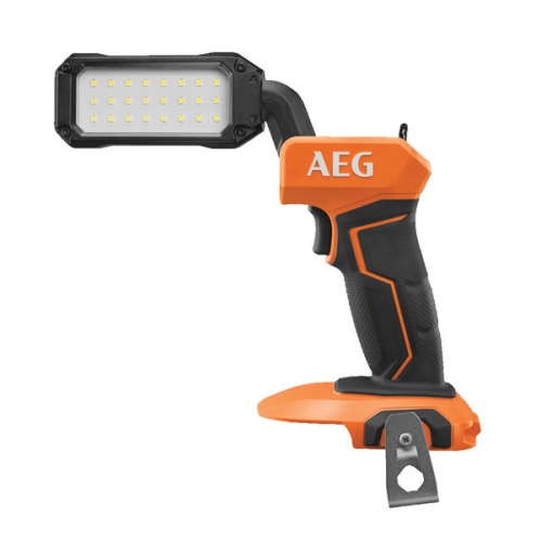 Foco de função 18V, 800 lúmenes, cabeça pivotante e rotativa. Fornecido em versão zero, sem baterias nem carregador, em caixa de cartão