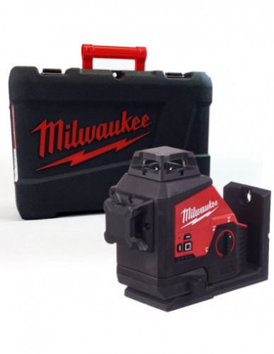NÃvel laser de 3 linhas M12, verde, micro ajuste, classificação IP54. Inclui pinça para tetos, suporte 360 para parede e placa de alta visibilidade. Fornecido em versão zero, sem baterias nem carregador, em kitbox