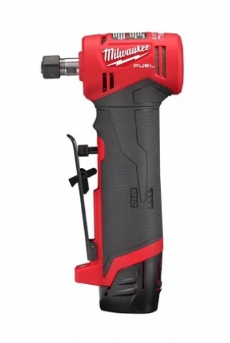 Retificadora angular M12 FUEL, 4 modos, 0-2.5.000rpm, comprimento 119mm, capacidade da pinça 6/8mm, diâmetro máximo de disco 50mm. Inclui pinças de 6 e 8mm. Fornecido com 1 bateria M12B4, 1 bateria M12B2 e carregador C12C, em bolsa de transporte