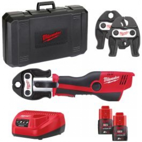 Prensadora hidráulica subcompacta M12 FORCE LOGIC, força de prensagem 19kN, 4.0000 ciclos de prensagem entre manutenções, capacidade máxima 35mm em metal e 40mm em plástico. Inclui 3 mordaças Geberit 15, 22 e 28mm. Fornecido com 2 baterias M12B2 e carregador C12C, em kitbox