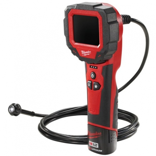 Câmara de inspeção sub compacta M12 360° M-SPECTOR, diâmetro de cabeçal 9mm, comprimento de cabo 914mm, tamanho ecrã 68mm, ecrã rotativo 270°, 4 LED´s envolventes. Fornecida com 1 bateria M12B2 e carregador C12C, em kitbox