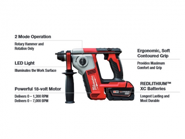 Martelo eletropneumático SDS-Plus M18, 2 modos, 1,2J de energia de impacto, capacidade máxima 16mm, 7.000ipm. Fornecido em versão zero, sem baterias nem carregador