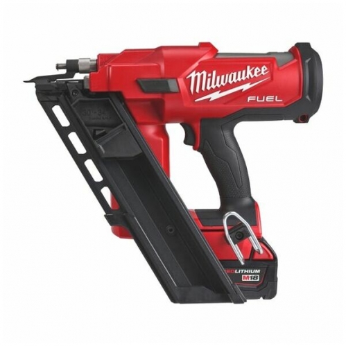 Pistola de pregos de estruturas M18 FUEL, carregador a 30°, diâmetro do prego 2,9-3,32mm, comprimento prego 50-90mm. Apenas versão de disparo individual. Fornecido com 2 baterias M18B5 e carregador rápido M12-18FC, em kitbox