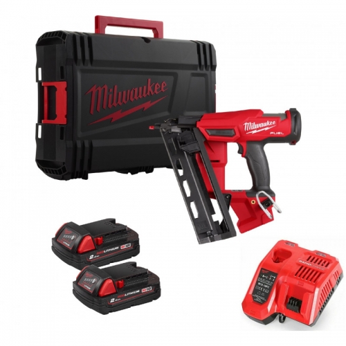 Pistola de pregos M18 FUEL, 16GA, diâmetro máximo prego 1,6mm, comprimento máximo prego 32-64mm, ângulo do carregador 20°. Fornecido com 2 baterias M18B2 e carregador rápido M12-18FC, em HD-box