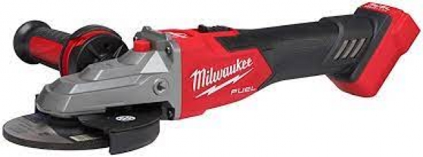 Rebarbadora de acabamentos M18 FUEL, diâmetro de disco 125mm, travão RAPIDSTOP, cabeça plana para trabalhar em ângulos até 43°, 8.500rpm, AVS, FIXTEC, proteção anti-golpe, interruptor de bloqueio. Fornecido em versão zero, sem baterias nem carregador, em HD-box