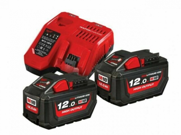 Kit 2 baterias M18HB12 + carregador rápido M12-18FC. Inclui bateria M12B6 de oferta
