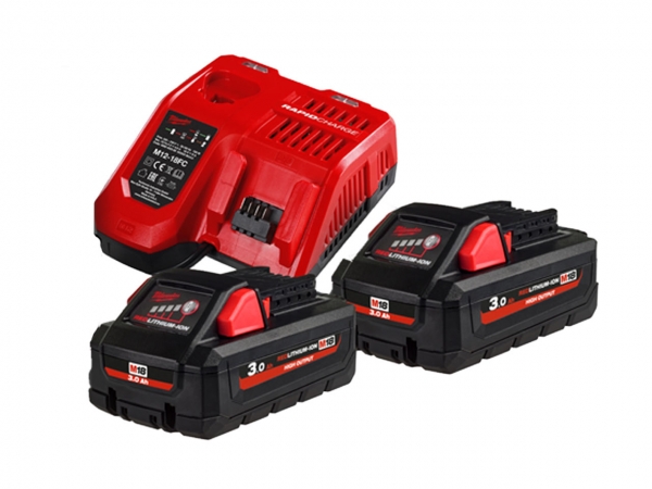 Kit 2 baterias M18HB3 + carregador rápido M12-18FC. Inclui bateria M12B2 de oferta